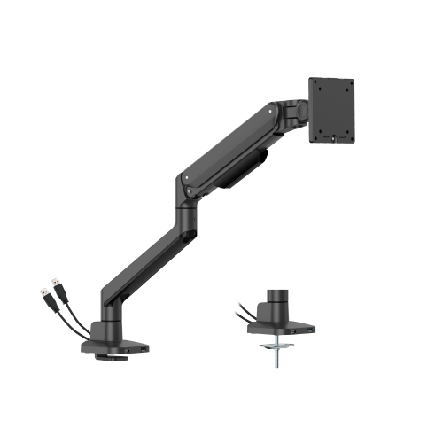 Deluxe Mechanical Spring Single Monitor Arm with USB-A/USB-C Ports