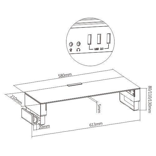 複雑なものを常にシンプルにします。この概念は、STB-092を設計するための主要な哲学です。このスマートモニタースタンドは、透明なガラス面を備えた特にシンプルな構造ですが、さまざまな機能があります。3つのUSB2.0ポートを備えたスマートスタンドは、コンピューターとデジタルデバイスの間に追加のコネクターを提供します。また、スマートスタンドには追加の入出力オプションを提供するオーディオポートがあります。調整可能なモニターライザーを備えたSTB-092の足には、快適な視角を提供するために3つの高さ設定があります。アクセサリーのデザインは、職場を整頓するのにも役立ちます。スタンドの側面にある内蔵ケーブル管理は、モニタースタンドとデスクトップの両方のすっきりとした外観を維持します。サイドスロットは、IPAD、Kindle、Surface Books、またはスマホを置くための追加のスペースを提供します。この小さなスロットは、デスクトップ上のより多くのエリアを節約し、常にデジタルデバイスを手元に置いておきます。5mmの強化ガラスで製造された表面は、20kgの重量に耐える強力な耐衝撃性と耐荷重性を備えています。STB-092は、シンプルで整然とした職場での需要に理想的なオプションです。
