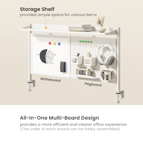 Clamp-On Desk Pegboard & Whiteboard Organizer Shelf (for 1200mm Desktops)