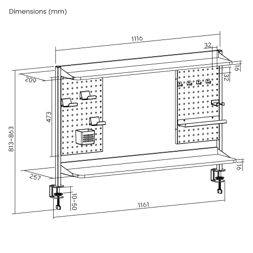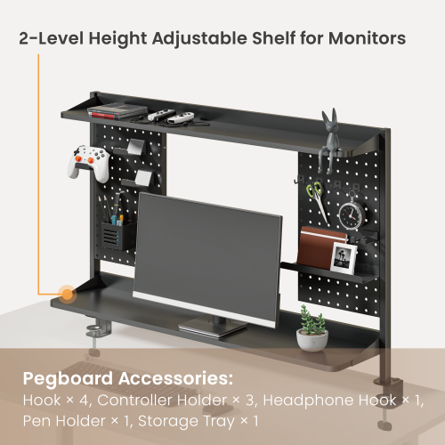 An ideal solution for decluttering any workspace while adding modern style. Crafted with durability and versatility in mind, this organizer features a sleek design that fits a variety of desk sizes. With customizable storage options and a space-saving structure, it keeps tools and accessories neatly organized and easily accessible. Perfect for home offices, workstations, or gaming setups, these pegboard shelves combine functionality and style for a more efficient workspace.
