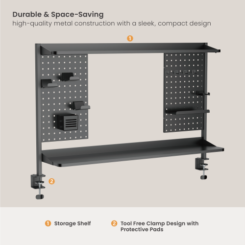 Clamp-On Multi-Purpose Pegboard Organizer Shelf