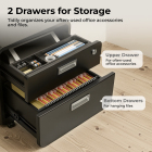 LUMIのCAB03-1ロック式モバイルファイルキャビネットを使用して、重要なアイテムやドキュメントを手元に保管します。コンパクトなデザインにより、キャビネットはほとんどのテーブルやデスクの下に収まります。スムーズなスライドメカニズムにより、引き出しは静かに開閉できます。上部の引き出しにある取り外し可能なトレイは、小物を整理して保管する場所を提供します。調整可能なファイルラックは、下部の引き出しのサイズを変更して、FCサイズのドキュメントを分けて収めます。滑らかなエッジとコーナーは快適さと安全性を提供します。2つのロッキングキャスターを備えたローリングキャスターは、スムーズな動きを提供するか、キャビネットを所定の位置にしっかりとロックします。あらゆるワークスペースや家庭に最適なストレージソリューション!