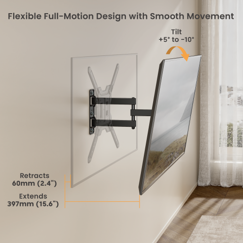 The LDA41-441 TV wall mount offers flexibility and convenience in both home and office settings. With smooth motion, it allows for easy adjustments of tilt, swivel, and extension to ensure an ideal viewing angle in any setting. Its versatile design supports various TV positions to enhance comfort and maximize the viewing experience while saving space when not in use. Cable management keeps everything organized.