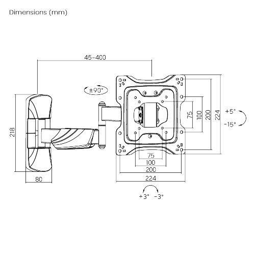 LPA50-222は、最大25kg/55lbsのほとんどの23''-42''LED/LCDフラットパネルテレビ用のフルモーション壁掛け金具です。アームは最大400mmまで伸ばすことができ、画面ディスプレイを完全に配置するためにあらゆる動きに対応します。最大90°左右に回転し、-15°~+5°傾斜します。この組み立て済みのアームには、統合されたケーブル管理と装飾カバーが付属しており、エレガントで整頓された外観を保証します。内蔵のレベル調整により、時計回りと反時計回りに3度回転し、完全に水平になることを保証します。最大200x200のVESAホールと互換性があります。