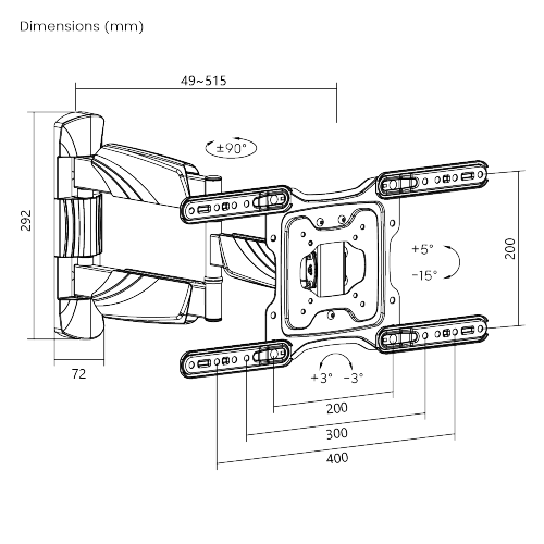LPA50-443は、最大35kg/77lbsのほとんどの23''-55''フラットパネルテレビ用のフルモーション壁掛け金具です。アームは最大515mmまで伸ばすことができ、画面ディスプレイを完全に配置するためにあらゆる動きに対応します。最大90°左右に回転し、-15°~+5°傾斜します。この組み立て済みのアームには、統合されたケーブル管理と装飾カバーが付属しており、エレガントで整頓された外観を保証します。内蔵のレベル調整により、時計回りと反時計回りに3度回転し、完全に水平になることを保証します。最大400x400のVESAホールと互換性があります。