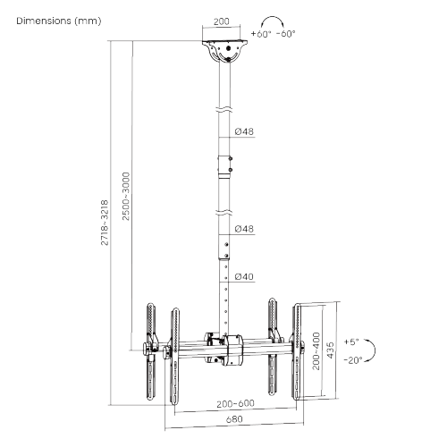 LumiのPLB-CE946-01XLDは柔軟な天吊り金具で、2つのスクリーンを背中合わせに配置してさらなる可能性を提供するように設計されています。角度調節式天井プレートは、平天井と勾配天井向けです。工具を使わずに、ディスプレイを下に傾けてポールの周りを回転させることができます。ほぼすべての37"~70"フラットパネルテレビに対応するVESAプレートが含まれています。各マウントは最大45kg/99lbsを保持します。テレビを完璧に配置するための高さ調節機能と、ケーブルを隠して整理するためのワイヤー管理チャネルを備えています。