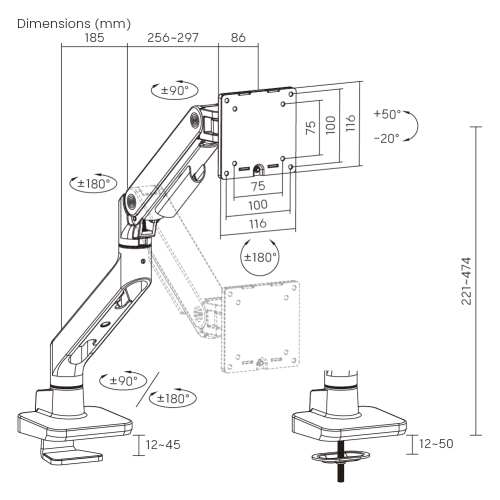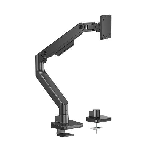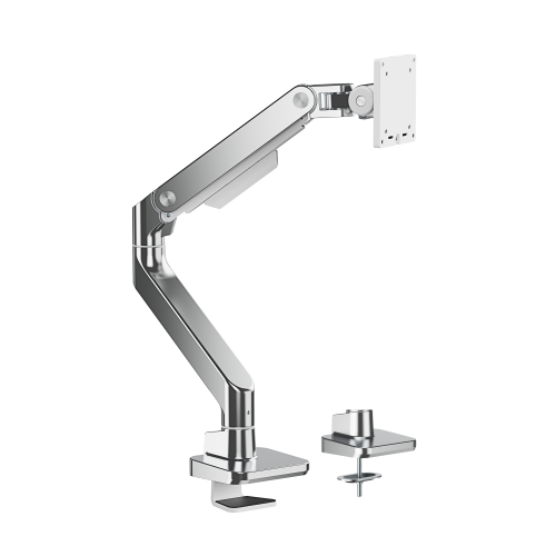 Securely holding up to 20kg (44lbs) and accommodating monitors up to 49''. Optimized head tilting spring makes a smoother tilting adjustment. Available in modern colors including classic black, white, and stylish polished Aluminum, this arm combines strength with style to elevate the workspace. Its easy topside installation eliminates the need for crawling under desks.