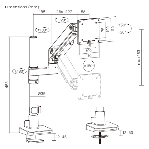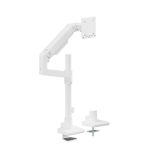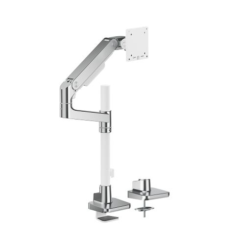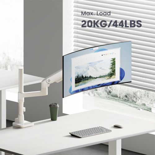Securely holding up to 20kg (44lbs) and accommodating monitors up to 49''. Optimized head tilting spring makes a smoother tilting adjustment. Available in modern colors including classic black, white, and stylish polished Aluminum, this arm combines strength with style to elevate the workspace. Its easy topside installation eliminates the need for crawling under desks.
