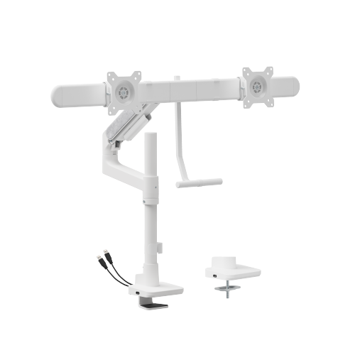 Fusion Gas Spring Pole-Mounted Dual Monitor Arm with USB-A/USB-C Ports