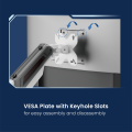 Designed for gaming, the LDT114-C012UC brings style and performance together. With bold color options and futuristic shapes, an advanced gameplay vibe is created for stronger immersion. Full flexibility—tilt, swivel, and rotation—polishes every angle for optimized viewing, while the built-in spring tension mechanism ensures smooth, effortless adjustments. A keyhole-patterned VESA plate makes setup and disassembly effortless, and a base with USB ports facilitates charging and data transfer.