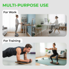 Designed for a dynamic workstyle, the balance board creates a low-impact rocking motion that keeps the user's body constantly engaged while working, no matter the legs, back, or core muscles. It encourages the body in a comfortable, natural position, reducing the negative effects of a static workstyle. Built with 3-layered premium materials, the balance board is durable and sturdy enough to hold up to 200kg/440lbs. It has a foot massage to reduce fatigue and improve blood circulation. With a leather lanyard, it is convenient to carry or hang it on the hook of the standing desk.