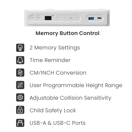 Designed with an elegant appearance and ultra-thin under-desk drawer, the S08-22D-SWW provides an ideal sit-stand solution for the modern home or office workspace while keeping a clean look. Integrated memory control including USB-A & USB-C ports and a wireless charger on the desktop ensure easy use and convenient charging. And gyro-current collision avoidance system promises safety during up and down movement.