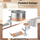 Unlike most headphone stands that take up vital desk areas, the HPS01-9A frees up desktop space with a convenient clamp-on design. The built-in drink holder is perfect for cups and cans. The 360° rotating hook provides an ideal place to hang headphones, bags, umbrellas, hats, and more. The soft anti-slip silicone pad protects headphones and a safety lip prevents items from falling. Cable management slots provide a space to channel or coil wiring for a neat and clean appearance.