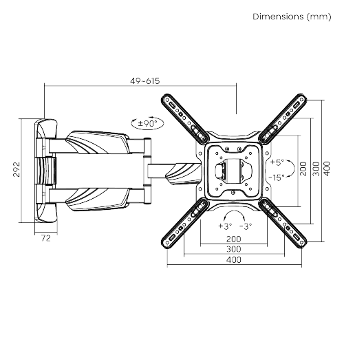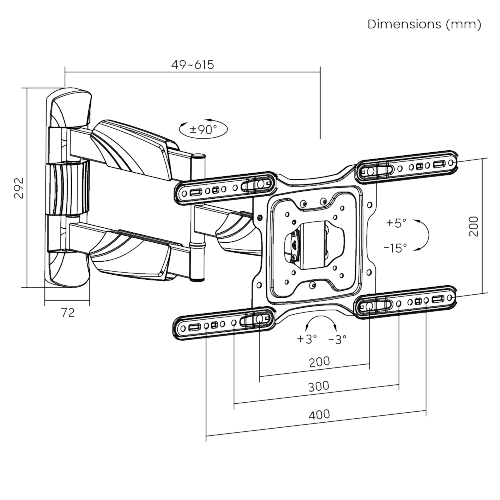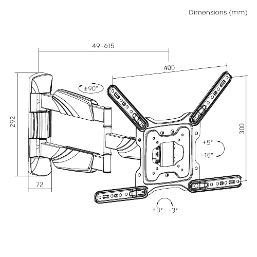 The LPA50-443AL is a full-motion wall mount for most 23''-55'' flat panel TVs up to 35kg/77lbs. The lengthened arm can be stretched up to 615mm for a full range of movement to perfectly position your screen display - swivel up to 90° left or right and -15°~+5° tilt. This pre-assembled arm comes complete with integrated cable management and decorative covers to ensure an elegant and tidy look. Its built-in level adjustment offers 3° clockwise and counterclockwise turning to ensure it is perfectly level. Compatible with VESA hole up to 400x400.