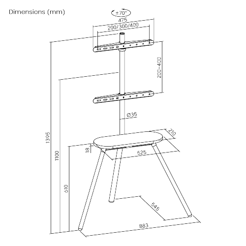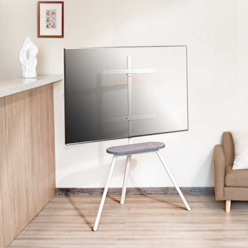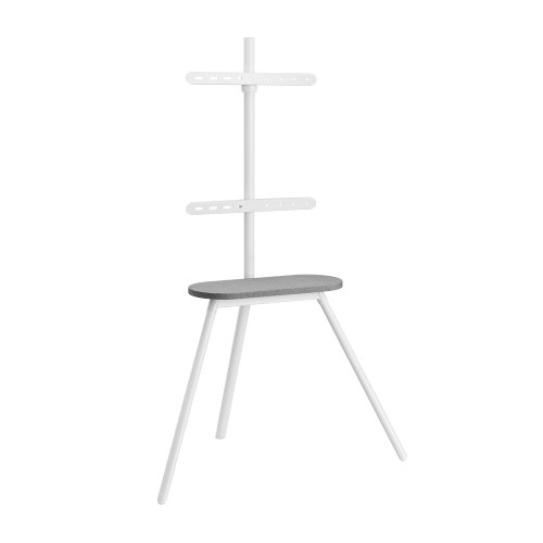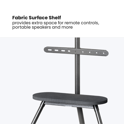 FS28-44F-03 is an Easel Studio TV Floor Stand with a minimalist yet design-oriented style. Designed to create a comfortable viewing environment, ideal for home theaters, offices, display centers, and other uses. The easy lock attachment of arms turns installation a snap, and the +70°~-70° screen swivel allows you to find the right angle for your audience. A textured fabric shelf is located directly below the TV that conveniently holds remote controls, portable speakers, and other small items. Cables can be elegantly concealed thanks to the hidden cable management system located inside the leg structure.