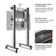 Incorporating an innovative weight balance design and heavy-duty construction, the HAW400E-75FS allows users to up and down the displays with only a touch, supporting the displays with a weight of 35~65kg (77lbs~143lbs). Integrated cable management and decorative cover keep a clean and neat look, An extra storage with elastic straps holds the PDU power strip in place. This TV cart is perfect for schools, conference rooms, healthcare facilities, trade shows, and more.