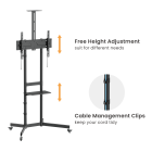 This high-quality, cost-effective TV cart is designed for most 37”-70” TVs, supporting up to 70kg (154lbs). It features a height-adjustable TV bracket, AV shelf, and camera shelf, offering flexible adjustment options to suit various settings. Combining durability with affordability, it’s an excellent choice for those seeking a reliable, heavy-duty solution.