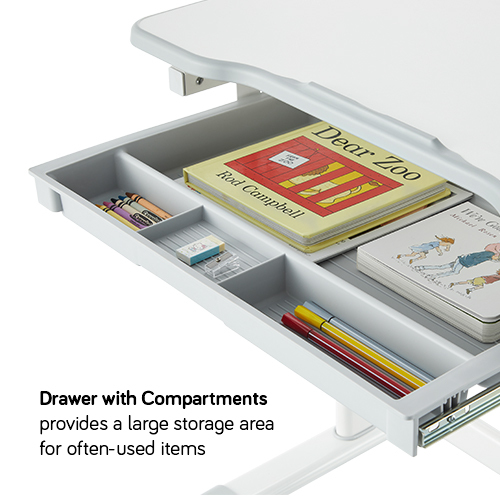 This desk and chair set provides an affordable and ergonomic furniture solution with features that meet the unique needs of a growing child. The desk and chair are manufactured using eco-friendly materials combined with quality manufacturing processes and performance. Manual lifting height adjustments are effortless and the tiltable desktop provides the optimal angle for comfort when writing, reading, and drawing. A drawer with compartments offers a large storage area for books, paperwork, supplies, and other often-used items. Best of all, ergonomics instills healthy work habits and posture that kids can carry into their adulthood. Not only a great addition to any child’s room, classroom, or play area, the B207 also adds up to the best choice for parents wanting a healthier and happier life for their children, now and in the future.