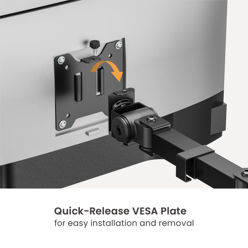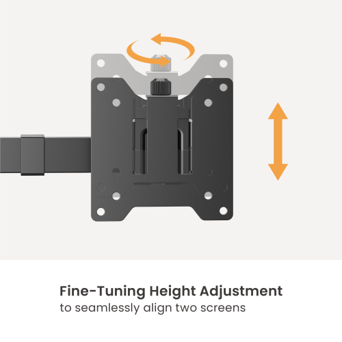 Experience the next level of monitor support with our advanced articulating arm, built for exceptional strength and flexibility. With a remarkable 20kg (44lbs) per screen load capacity, it effortlessly handles most screens in the market. Enjoy full height, tilt, and angle adjustability, and find the perfect viewing position for maximum comfort and productivity. Fine-tuning height adjustment helps seamlessly align screens. The quick-release VESA plate ensures fast and hassle-free installation. Upgrade the workspace with unmatched durability, and smooth adjustability.