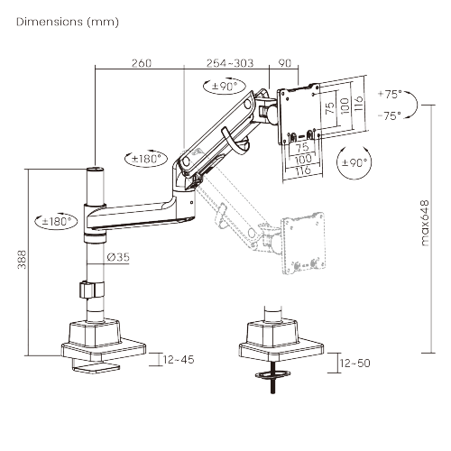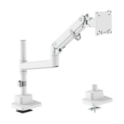 The gas spring mechanism ensures effortless height and tilt adjustments, while the optimized one-way bearing offers smoother tilting. The arm features a quick-release VESA plate for fast installation, and integrated cable management for a clean workspace. With topside installation for convenience.