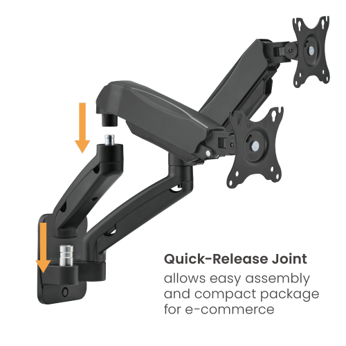 The LDA31-114E Monitor Arm provides the user with proper ergonomic viewing with both function and affordability. Perfect for compact space by mounting the display on the wall free of a desk. Its VESA plate with keyhole slots is designed for quick installation and removal. Quality spring tension mechanism ensures great weight balance for monitors. The quick-release joint allows easy assembly and compact packaging for e-commerce sellers. The LDA31-114E is a good choice to save both time and money while getting the work area more clean and organized!