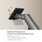 The LDT107-C012UCP is designed for heavy-duty applications, supporting loads of up to 20kg. Engineered with a precision one-way bearing, it enables smooth, friction-free tilt adjustment. This robust construction is backed by 80,000-cycle fatigue testing, ensuring exceptional durability and long-term reliability. Installation is quick and easy, thanks to the quick-release VESA plate and top-mount base. Built-in USB-A/USB-C ports on the base further enhance the accessibility to power and data transfer. Experience the elevated performance and productivity boost delivered by its premium materials and advanced engineering.