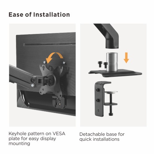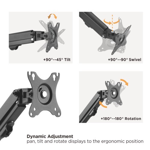 LUMI’s LDT45-C012 Monitor Arm embraces minimalist culture and offers an eye-pleasing design that adds a simple yet functional elegance to any work environment. Due to a unique detachable base, the LDT45-C012 is quicker and easier to install on adjoining desks and cubicles. For corporate environments or where monitor upgrades are common, there’s no need to re-adjust the arm when switching out monitors due to the LDT45-C012’s smart weight-balancing system that’s capable of counterbalancing most monitors weighing 2~7kg(4.4~15.4lbs). Best of all, the LDT45-C012 comes in at a budget friendly affordable price.