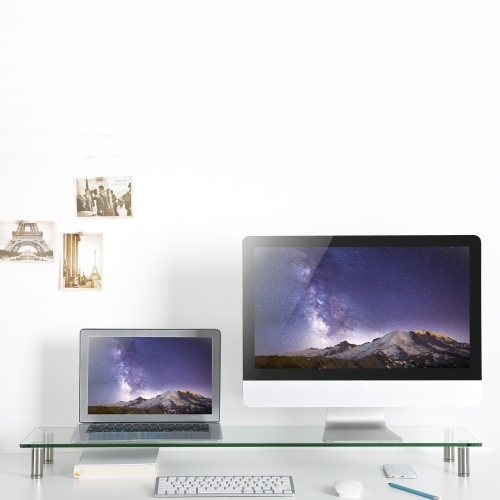 Following the popular concept of multi-tasking in the modern office space calls for more organization and a more attention to comfort. The STB-106 will elevate your device to a proper viewing height increasing convenience and comfort at the same time, reducing the stress of eyes and neck strain while adding a large storage space below the riser. Adjustable stainless steel feet provide strong and flexible support. It is a perfect addition to any home or office work space.