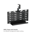 The CC11-20-1 Under-Desk Cable Tray with vertical design for versatile cable routing. It offers clamp-on option for flexible installation. Improved design with PB-002-P1 hooks and trays maintains a more clear and organized space.