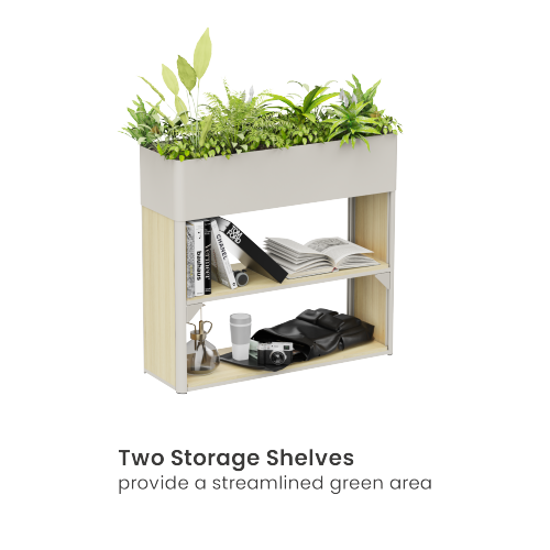 Floor Planter with Storage Shelf—an ideal addition to your product lineup. This freestanding planter enhances commercial environments by serving dual purposes: it adds greenery and provides two practical storage shelves. Perfect for creating natural space dividers in offices, retail spaces, or showrooms, it offers both aesthetic appeal and functional versatility. Elevate your market offerings with this sleek, space-efficient solution that meets the evolving needs of today’s business spaces.