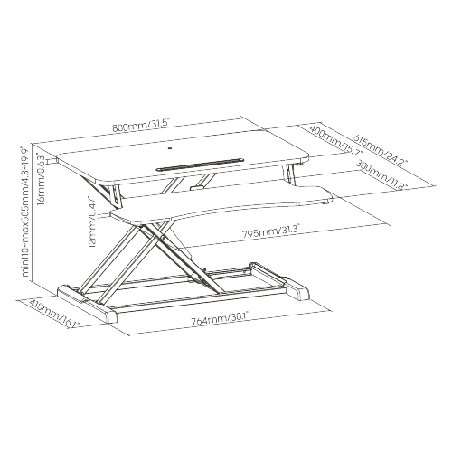 DWS28-01 of standard gas spring scissor-lift desktop sit-stand workstation incorporates the effortless gas spring structure with the particle board & melamine worksurface to create an ergonomic worksurface to boost your working productivity.