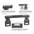 LED21-44 combines ultra-thin design with practical functionality. With a wall clearance of just 9mm (0.35”) and a maximum load capacity of 75kg(165 lbs), it supports TVs up to 75". LED21-44 delivers an excellent user experience through thoughtful features: VESA indicating marks assist in precise bracket placement, lateral shift brackets allow easy left-right adjustment to fit different VESA patterns, and strong magnetic contacts securely hold the TV against the wall. An additional kickstand simplifies cable management and maintenance, while its compact packaging is optimized for e-commerce shipping.