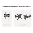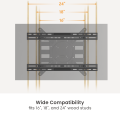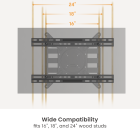 With a universal design, the extension bracket is compatible with most TV wall mounts, including fixed, tilt, and full-motion mounts. It is designed to extend mounting compatibility to 16”, 18”, and 24” wood studs, offering greater installation flexibility. The sliding design enables horizontal adjustment, ensuring precise TV positioning even when studs are off-center.