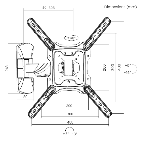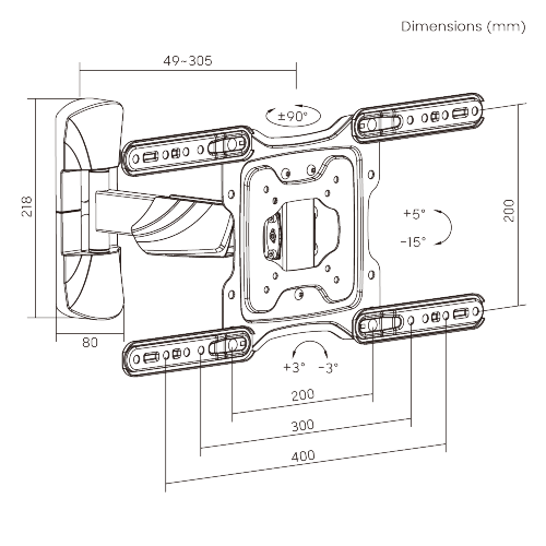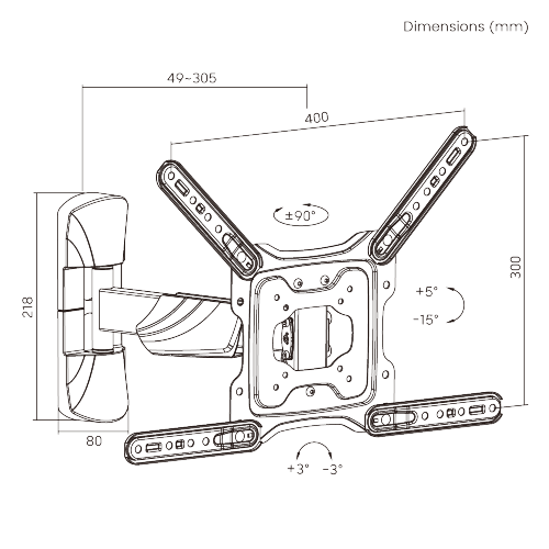 The LPA50-441 is a full-motion wall mount for most 23''-55'' flat panel TVs up to 35kg/77lbs. The arm can be stretched up to 305mm for a full range of movement to perfectly position your screen display - swivel up to 90° left or right and -15°~+5° tilt. This pre-assembled arm comes complete with integrated cable management and decorative covers to ensure an elegant and tidy look. Its built-in level adjustment offers 3° clockwise and counterclockwise turning to ensure it is perfectly level. Compatible with VESA hole up to 400x400.