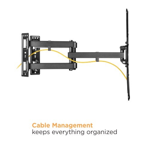 The LPA63-446C Full-Motion Corner TV Wall Mount fits most 23''-55'' TVs up to 45kg/99lbs. With split arms, it can be installed easily on flat walls or the dead corner space. A full range of motion provides the user with wide viewing options and the ample swivel, tilt and extension ability positions the TV nearly anywhere. The +3°~-3° leveling adjustment ensures the TV is perfectly positioned. In addition, the integrated cable clips provide a clean and organized look.