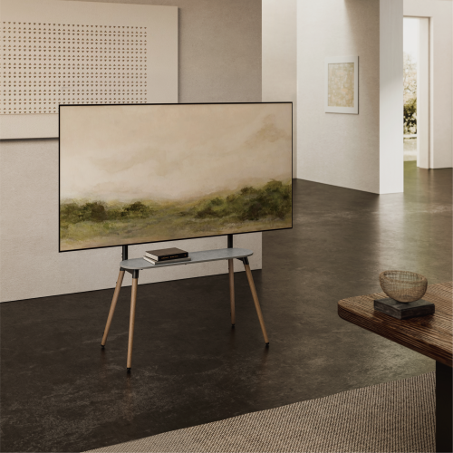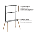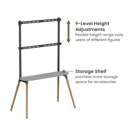 Transform your viewing experience with this Easel Studio TV Floor Stand! The elegant four-leg design blends style with exceptional value, making it a perfect fit for any modern space. With 9 adjustable height levels, a storage shelf, and integrated cable management, it keeps your setup neat and functional. The anti-slip pads ensure stability and protection, while the artistic easel-inspired look elevates décor. Smart, stylish, and practical—upgrade living space today!