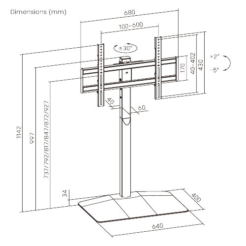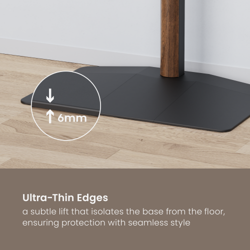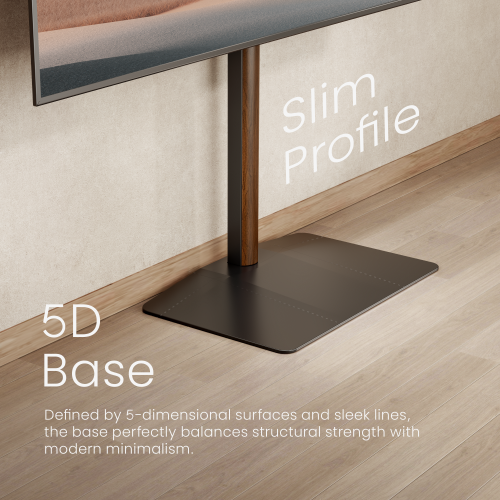 Designed for stability and style, this TV stand features a striking 5D large base with protective pads, ultra-thin edges for floor protection, and a slim profile that saves space. With adjustable height and angle, plus built-in cable management, it delivers a clean, tailored setup for any modern living space.