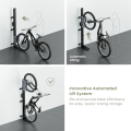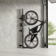 LBM12-02 is an efficient, user-friendly bike storage solution for bicycles up to 32kg (70.4lbs), including mountain bikes, e-bikes, city bikes, and road bikes. Its mechanical lift system raises bikes vertically, while the swiveling design allows them to be placed flush against walls, maximizing space efficiency. The adjustable three-level wheel holder fits different fenders and wheel sizes, and the e-bike adapter holder keeps cables organized and accessible.