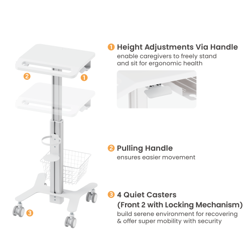 Come and try our Height Adjustable Multi-Storage Modular Medical Cart. MED05-1 aims to meet the various needs of caregivers by seamlessly integrating technology and patience care. Your ergonomic health is guaranteed by smooth height adjustments, which allows for effortlessly switching between standing and sitting. By providing multiple storage solutions, small items can be easily organized. Super mobility with security are ensured by 4 quiet casters, in which the front 2 are equipped with locking mechanism. Additionally, The compact packaging benefits sellers by reducing warehouse and shipping costs.