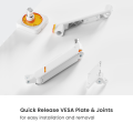Feel the energy flow in orange. The LDT111-C012L delivers stable support for monitors up to 20 kg (44 lbs) while remaining economically priced. Its orange-accented design brings both style and a lively, dynamic experience to your workspace. The monitor arm features a quick release VESA plate and joints for easy installation and removal, a built-in spring tension mechanism for precise weight adjustment, and a RGB Mode button offering 16 lighting modes to create a personalized ambience. It combines vibrant design with reliable strength for a flexible and dynamic workspace.