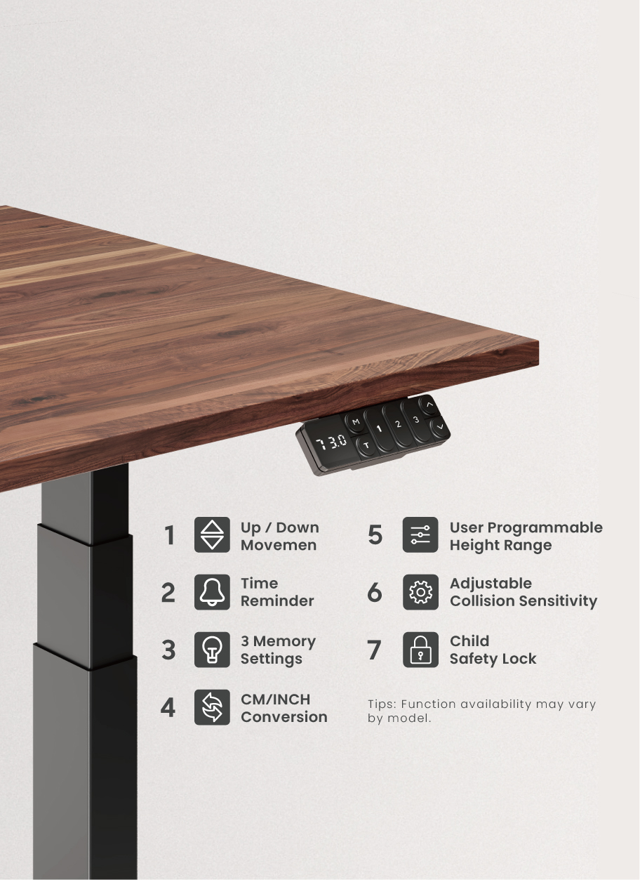 La caja de control es la CPU del sistema de elevación que actúa como el "cerebro" del escritorio. El diseño de tabla única integra electrónica de precisión con un mayor uso de SMT automático para un rendimiento excepcional del sistema y un tamaño reducido. Los adhesivos resistentes al calor fomentan la durabilidad para un uso prolongado.