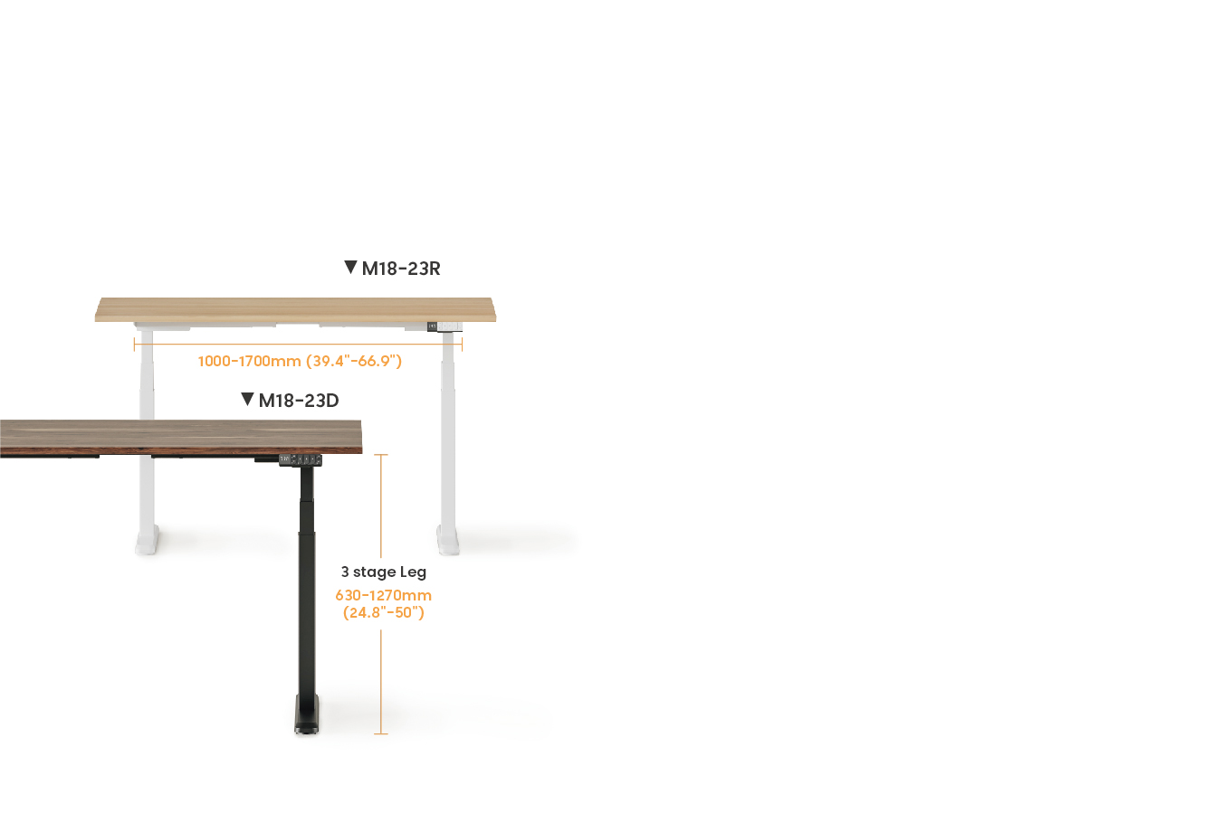 Gracias a los motores independientes de arranque y parada suave (uno en cada pata), estos escritorios de altura ajustable ofrecen una capacidad de elevación líder en su categoría de hasta 180 kg/396 lbs, con una estabilidad excepcional, garantizando ajustes de altura suaves y silenciosos durante toda su vida útil. Algunos modelos seleccionados cuentan con motores sin escobillas, que proporcionan un funcionamiento aún más silencioso y movimientos más suaves y rápidos, con velocidades de hasta 80 mm/s, además de un control de altura más preciso, mayor durabilidad y mejor eficiencia energética, lo que los hace ideales para un uso intensivo y a largo plazo.