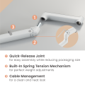 The gas spring mechanism ensures effortless height and tilt adjustments, while the optimized one-way bearing offers smoother tilting. The arm features a quick-release VESA plate for fast installation and integrated cable management for a clean workspace. Designed for secure wall-mounted installation, it provides stability and convenience while maintaining a sleek and organized setup.