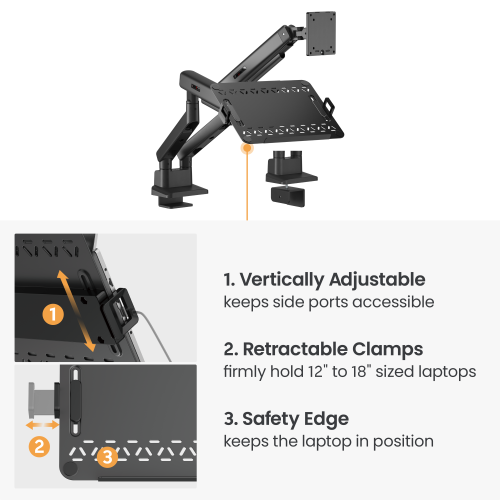 Premium Mechanical Spring Monitor Arm with Laptop Holder