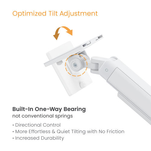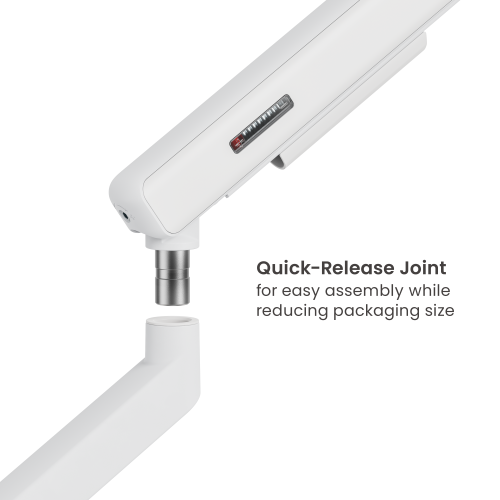 The LDT104-C024P combines refined aesthetics with robust performance, supporting up to 11kg/24.2lbs. Designed for users who value both elegance and function, it features a tilt mechanism with built-in one-way bearings for smooth, effortless adjustments. Quick-release VESA plate, joints, and top-mounted installation ensure easy setup and use.