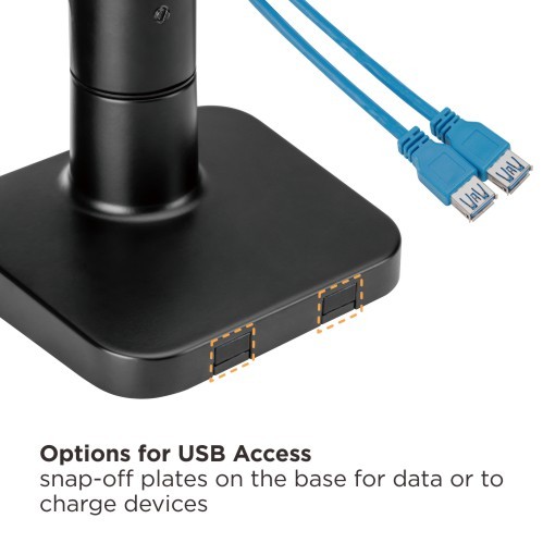 Designed using lightweight aluminum and a strong interior mechanical spring, the LDT60-C012U Heavy-Duty Spring-Assisted Monitor Arm can firmly hold up to 16kg/35.2lbs and 17”-45” oversized displays. The VESA plate with keyhole slots allows for effortless monitor installation and removal. Built-in 180° rotation stop prevents the arm from hitting adjacent partitions and walls. Quick-release joint is designed for easy user assembly while reducing packaging size. The cable management conceals the wires for a clutter-free appearance. In Addition, the base offers space for USB cables to pass through for data or charging needs.