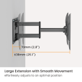 Available in different scenarios, the LPA86-466A Cost-Effective Heavy-Duty Full-Motion TV Wall Mount contributes to elevated entertainment. With a robust design, the mount holds TVs up to 75kg. Significant viewing flexibility is maximized by the full-motion characteristic, allowing extensive angle adjustments according to needs and preferences. To further optimize TV positioning, the mount offers large extension with smooth movement. With compact package size, storage and delivery costs are effectively saved for e-commerce sellers. The hook and loop fasteners are included for easy cable management to keep your space clean and organized.